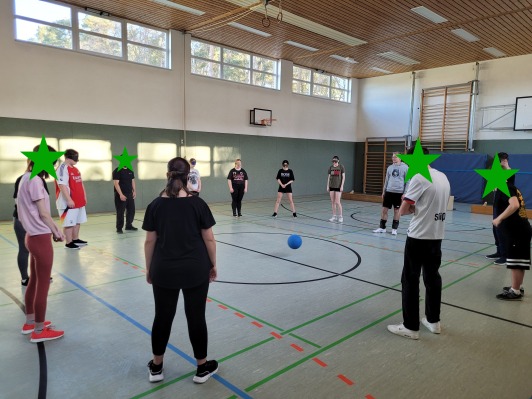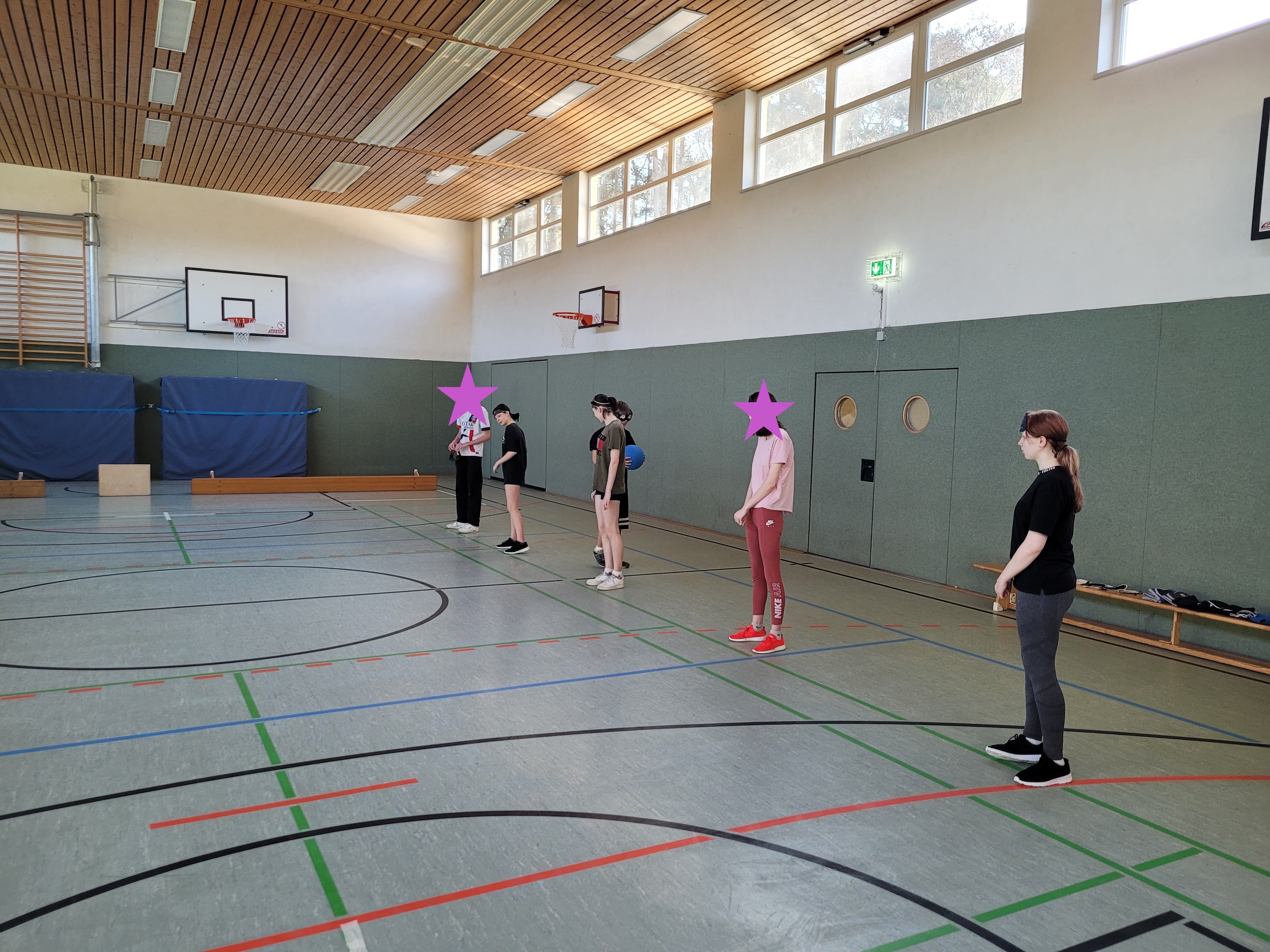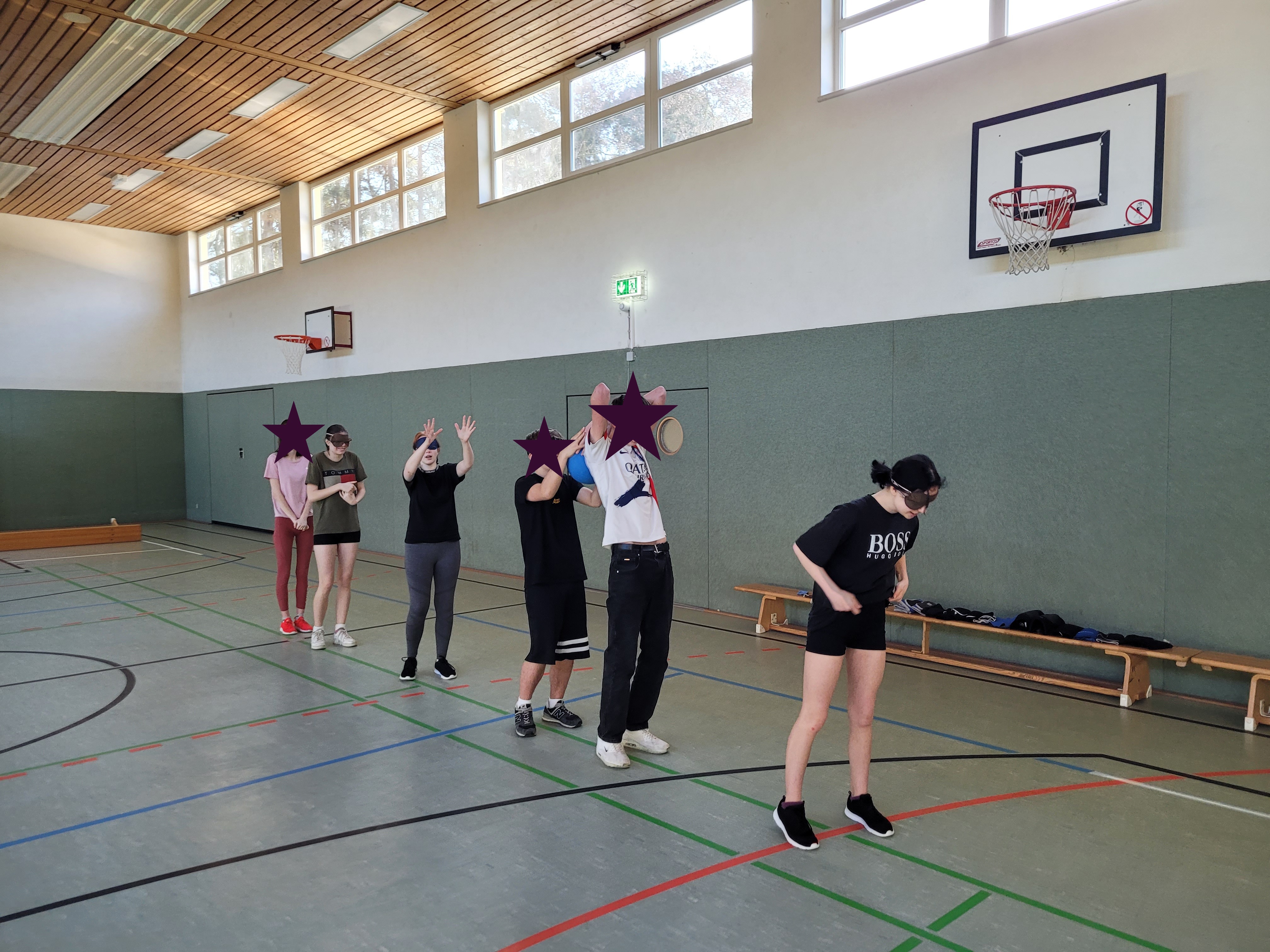 Über 2 Unterrichtsstunden lang übten die Kids das Handeln mit Ball ohne Augenlicht.